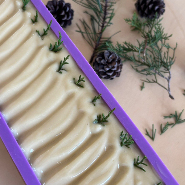 Ingredients; coconut oil, evoo, palm oil, lye, h2o, pine needles EO, cedar-wood EO.